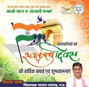 समस्त नगरवासियों को स्वतंत्रता दिवस की हार्दिक हार्दिक शुभकामनाएं khabronkiawaz August 16, 2022August 16, 2022 समस्त जिले वासियों को 15 अगस्त 2022 स्वतंत्रता दिवस अमृत महोत्सव की हार्दिक-हार्दिक शुभकामनाएं,,,, दिलबर यादव भाजपा जिला अध्यक्ष जिला राजगढ़ मध्य प्रदेश की और से बहुत-बहुत बधाई हो शुभकामनाएं,,,,, नगर पालिका अध्यक्ष श्रीमती लीला देवी स्व. फूल सिंह कुशवाह की ओर से समस्त नगरवासियों को बहुत-बहुत बधाई शुभकामनाएं,,,,,,, आजादी की 75 वीं वर्षगांठ के अवसर पर समस्त नगरवासियों को अमृत महोत्सव की हार्दिक-हार्दिक शुभकामनाएं,,,,,, Facebook Twitter LinkedIn WhatsApp 0Shares राजगढ़ ब्यावरा