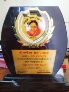 पूर्व विधायक श्री रघुनन्दन शर्मा की पत्नी स्वर्गीय श्रीमती कृष्णादेवी की पुण्यतिथि के अवसर जिला मुख्यालय पर आयोजित सम्मान समारोह में कवि ‘ श्री राज ‘ को पूर्व ऊर्जामंत्री विधायक प्रियव्रत सिंह खींची,विधायक बापूसिंह तंवर,पूर्व विधायक नारायण सिंह पंवार, मोहन शर्मा,प्रताप मंडलोई, हेमराज कल्पोनी,रघुनन्दन शर्मा सहित अन्य जनप्रतिनिधियों के करकमलों द्वारा शाल,श्रीफल,स्मृति-चिन्ह आदि भेंट कर सम्मानित किया गया।