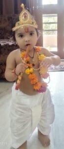 सरस्वती शिशु मंदिर स्कूल के छात्र- छात्राओं, सहित शिक्षकों के द्वारा नटखट कान्हा के बाल्य रूप में बने श्री राधाकृष्ण की झांकी