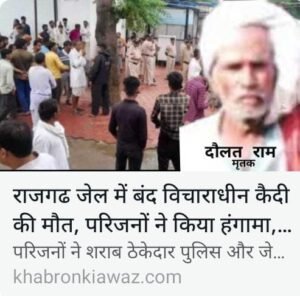 राजगढ/ब्यावरा:– न्यायिक मजिस्ट्रेट प्रथम श्रेणी राजगढ श्री सचिन जैन द्वारा सर्व साधारण को सूचित किया गया है कि जिला जेल राजगढ में निरूद्ध रहे बंदी दौलतराम पुत्र शंकरलाल दांगी, उम्र 60 वर्ष निवासी सेकनपुर थाना खिलचीपुर जिला राजगढ की 15 सितम्बर, 2023 को रात्रि 09:40 बजे के लगभग मृत्यु हुई है। बंदी की हुई मृत्यु के कारणों की जांच उनके द्वारा की जा रही है।